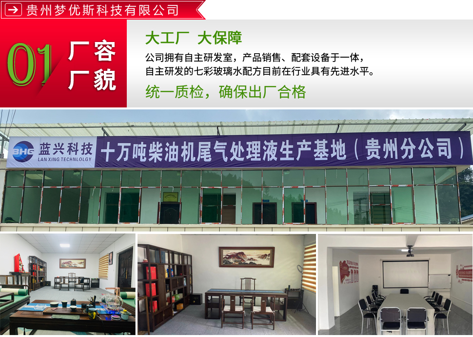 貴州夢優斯科技有限公司,成立于2017年06月30日,注冊資本500萬元,是一家專業致力于汽車環保科技產品研發、生產和銷售為一體的高新技術企業。目前公司在貴州省已建成年產規模20萬噸的車用尿素智能工廠。整體規劃占地面積10畝,建筑面積5000平米,廠址坐落于貴陽市白云區麥架鎮馬堰村格朗組52號。